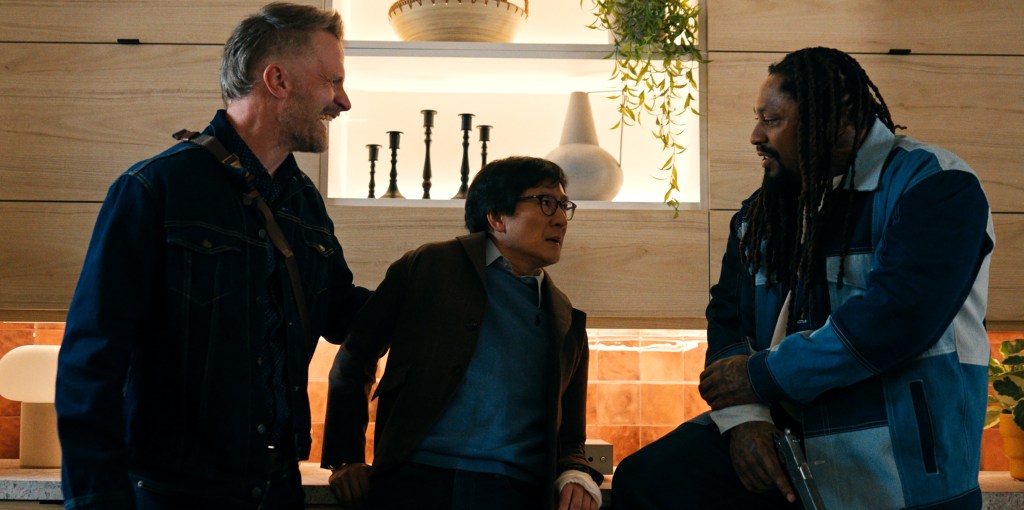 Ke Huy Quan as happy-go-lucky realtor Marvin Gable gets to show off his martial arts skills fighting an unsavory bunch of henchmen sent by his boba tea-addicted brother Knuckles played by Daniel Wu.
